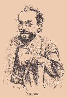 L’année suivante, Masson expose au Salon Poil et Plume qui donne à voir au public les œuvres des littérateurs-peintres. Celle de l’ex-magistrat, un pastel intitulé Mon Idéïal (sous-entendu féminin), se serait à l’évidence taillé un franc succès dans les débats contemporains sur la burqa ou le niqab. Masson a décrit cette toile ainsi : « Condenser en une puissante formule les mille et une prosopographies des gynoscopes de tous les temps ; lier tous ces rameaux épars en un unique et indispensable faisceau ; faire converger autour d’une seule tête les irradiations projetées par les poètes, prosateurs, aèdes, académiciens, bardes, rapsodes, scaldes, troubadours et diascévastes de tous les pays et les polariser en un éblouissant et définitif halo ; arracher à la Joconde son inquiétant sourire et aux anges de Botticelli leur rictus séraphique ; bref, créer un type qui participe tout ensemble de Frédégonde, d’Ève pendant la pomme, de Mme Adam, de Messaline, de Jeanne d’Arc, de Marie Alacoque(4), de Charlotte Corday et d’Yvette Guilbert. » Ce pastel représente une… femme voilée !