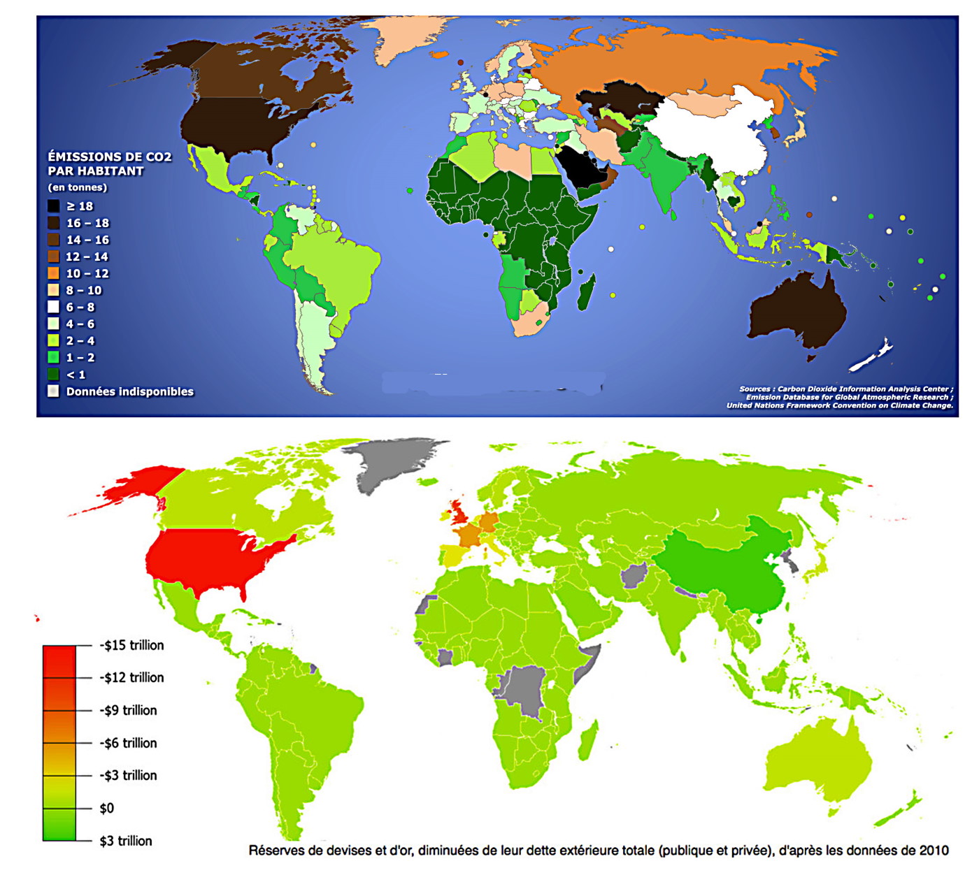 Les difficultés dues au Covid ont conduit les autorités à donner des aides massives aux particuliers comme aux entreprises : fonds de solidarité : 11,8 milliards d’euros en 2020 ; chômage partiel : 27, 1 milliards d’euros ; prêts garantis par l’Etat 129 milliards d’euros. L’État français n’ayant pas les fonds nécessaires, il a dû s’endetter. Le déficit public devint plus important que le PIB (118,2%). La dette privée, et pour les mêmes raisons, se trouva dans une situation comparable. Les banques centrales de l’Eurosystème ont absorbé une part importante des dettes émises dans la zone euro. Elles ont acheté environ 60 % des émissions de dettes privées et publiques et les investisseurs hors zone euro n’ont acheté que de l’ordre de10 % des titres. Une banque centrale peut créer indirectement de la monnaie et donc là encore créer une virtualité à partir du vide. À ce jeu, pays les plus endettés sont de loin les Etats-Unis et leur premier cercle d’affidés. Ces mêmes États sont aussi ceux qui consomment le plus, ceux qui émettent (par habitant) le plus de dioxyde de carbone, ceux qui fomentent le plus de guerres, ceux qui sont le plus de vaccinés, ceux qui ont le plus d’obèses… ceux aussi pour qui l’indice de fertilité est le plus faible.